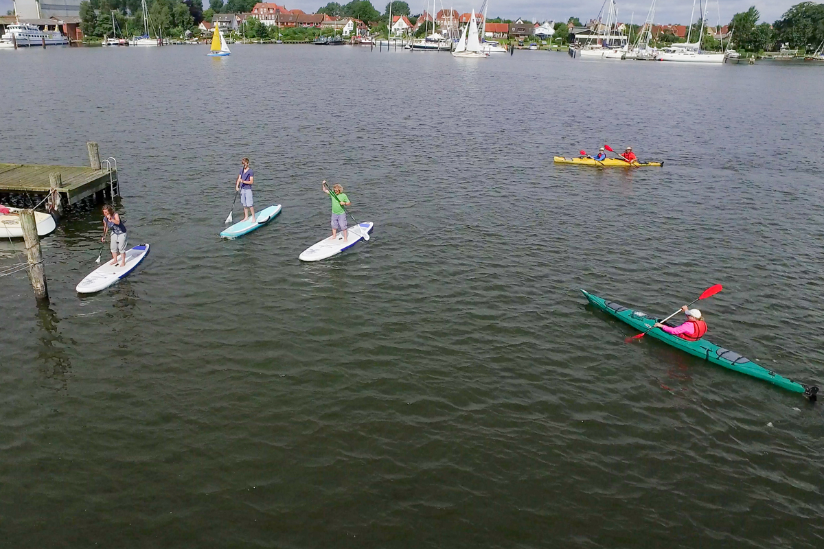 Zwar hat man auf einem solchen Board nicht die Reichweite eines Segelboots oder Kanus, aber genau diese Tatsache bietet einem die Möglichkeit, die Schlei-Ostsee-Region intensiv zu erkunden. Denn: Mit Ihrem Board können Sie an nahezu jeder Badestelle, jedem Strand, jedem Steg und in jedem Hafen an Land gehen, um die vielen Orte an der Schlei zu entdecken, bevor Sie sich ganz entspannt von der Strömung weitertreiben lassen.