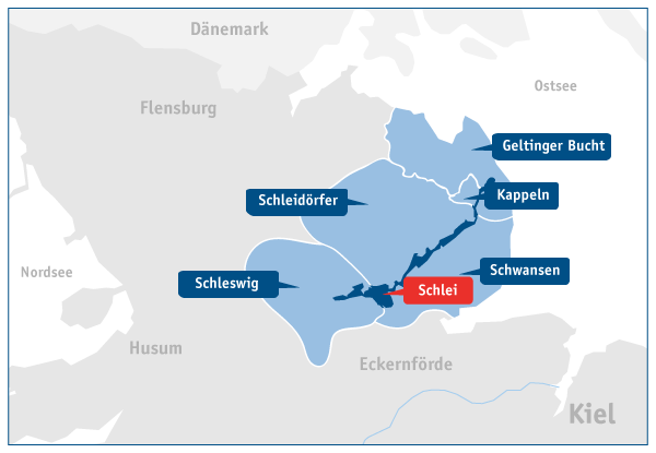 Den 42 Kilometer langen Ostseefjord Schlei finden Sie zwischen Kiel und Flensburg, direkt an die Geltinger Bucht und an die Eckernförder Bucht angrenzend. Reisen Sie aus Hamburg an, benötigen Sie eine gute Stunde, bis Sie sich mitten in Deutschlands vielfältigstem Segelrevier befinden. Herzstück unserer maritim geprägten Region ist die Schlei, die sich als zentrale Wasserader aus der Ostsee zwischen der Hafenstadt Kappeln, vorbei an den beschaulichen Schleidörfern und der charmanten Halbinsel Schwansen bis in die Wikingerstadt Schleswig erstreckt.