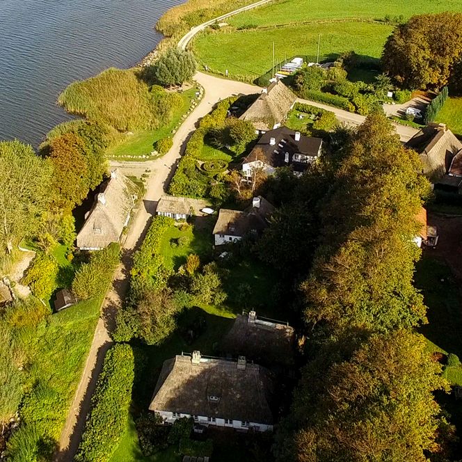 Ursprünglich gehörte das Dorf mal dem Hamburger Kaufmann Gustav Anton Schäffer, was anhand der Initialen G.A.S., die an vielen der denkmalgeschützten Reetdachhäuser zu finden sind, auch heute noch zu erkennen ist. Er ist maßgeblich dafür verantwortlich, dass das Dorf mit seinen altertümlichen Häusern heute noch so gut erhalten ist.